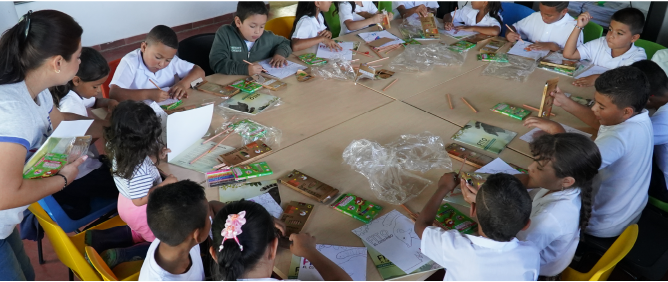 Fortalece las habilidades comunicativas y de comprensión de lectura, entendiendo la educación como un derecho fundamental para todos los niños, se interesan por la ayuda a estudiantes de preescolar y primaria de las instituciones educativas de los municipios de influencia.
